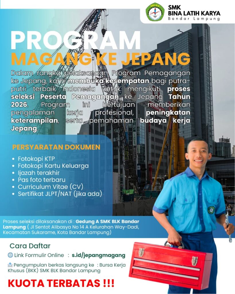 Hanya dengan biaya pendaftaran Rp5.500.000, kamu sudah berkesempatan magang langsung ke Jepang melalui program resmi pelatihan dan pemagangan luar negeri.
